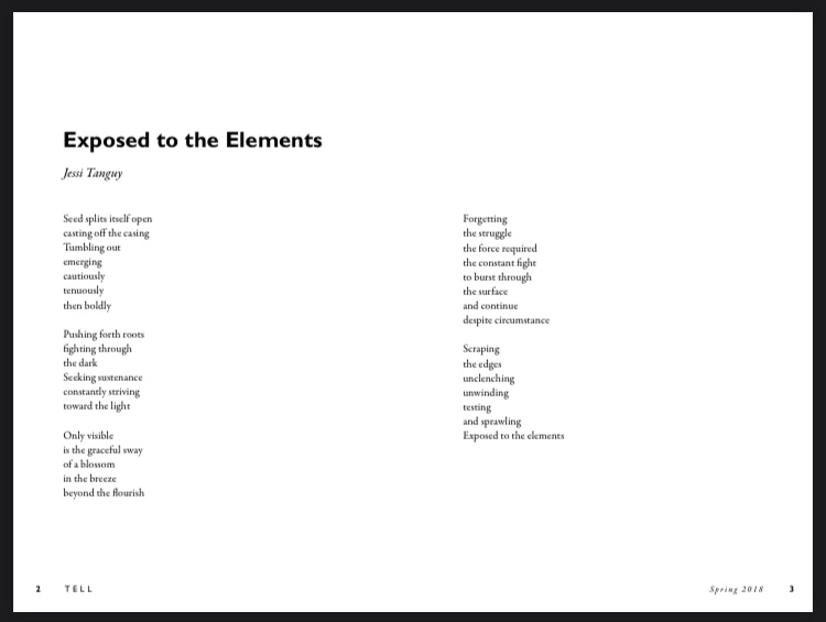 Jessi was a contributing Editor for Bunker Hill Community College’s first edition of its literary magazine TELL